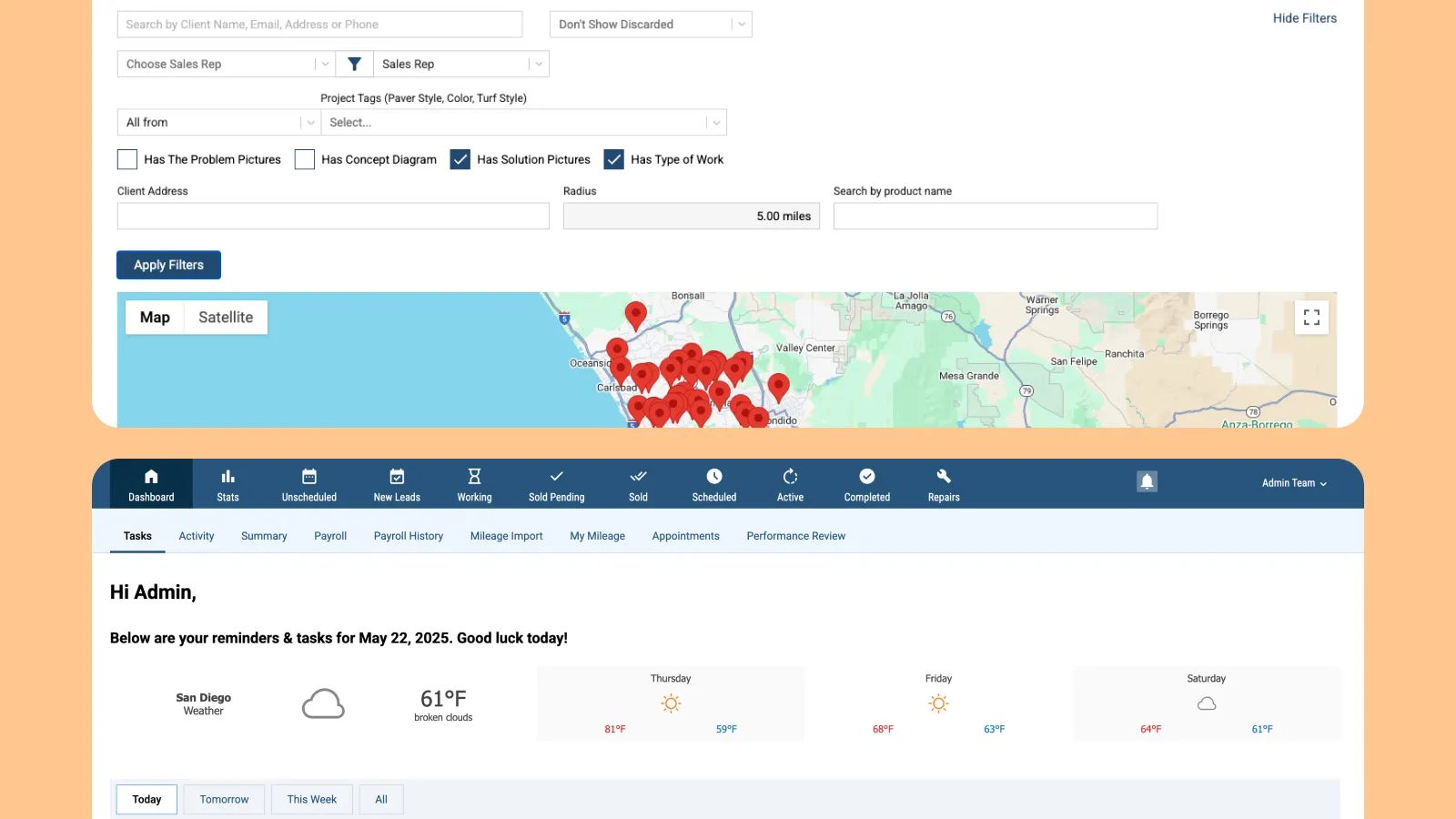 This is a private internal platform used by ~20 staff in a construction company. It started in 2017 as a simple lead management system and evolved into a full operational tool handling quotes, payments, payroll, commissions, and more. And all is custom-built without third-party dependencies. We used Meteor.js with React to deliver real-time UI updates powered by a reactive data layer and tight backend integration.